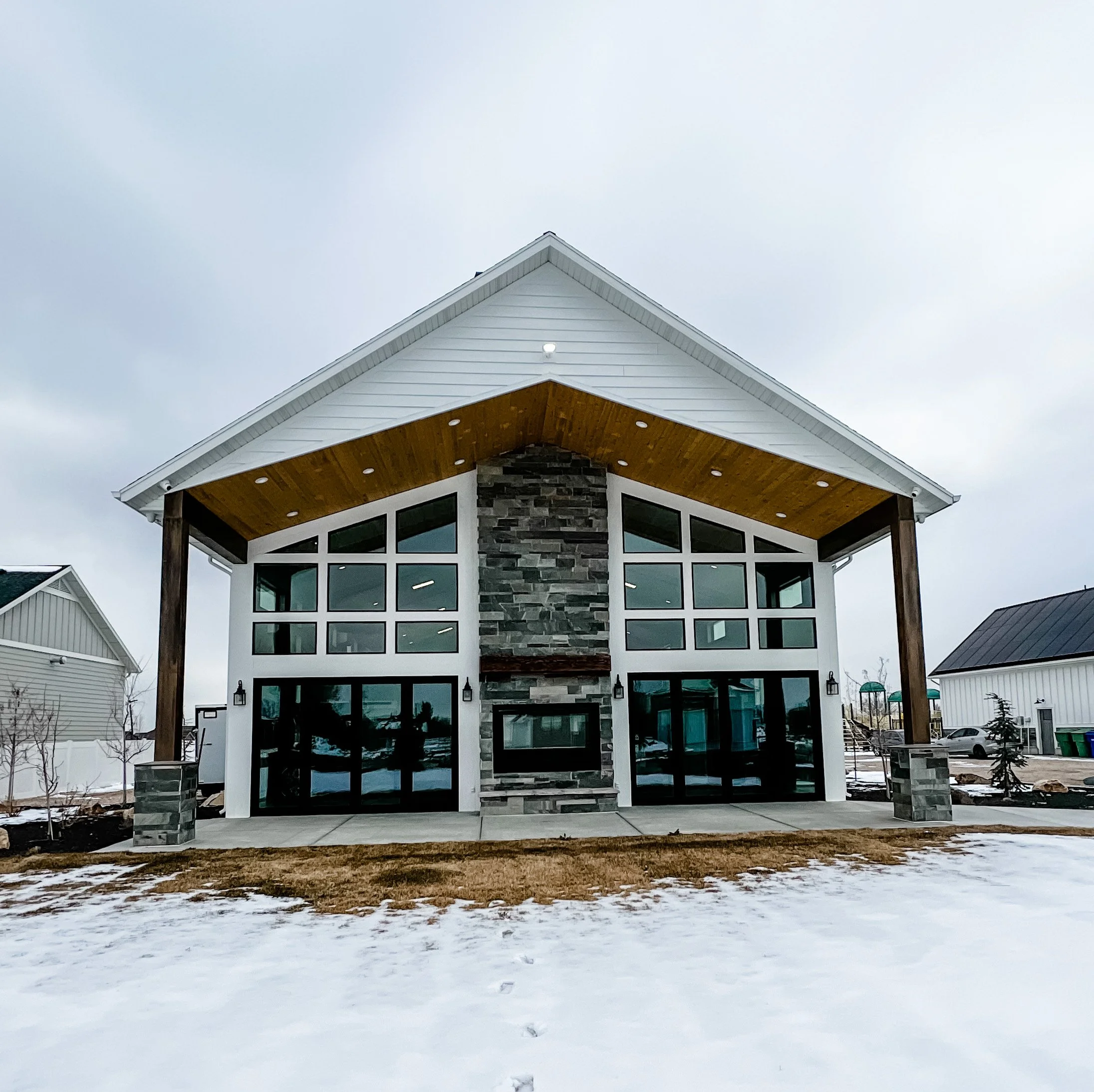 Four years ago we built a barndominium on the lot next to our home. We planned the building to be full of fun! We wanted a place where our family can go to unwind, reconnect, and make memories. We wanted to stick to a modern barn look that is timeless and beautiful while filling the space with as much fun as we could think of. We built the plans around a giant climbing wall we had purchased (which my kids absolutely love climbing on). We knew that we wanted anchors in the ceiling for aerobic silks, and a spot for all of our arcade games we had acquired over the years. We wanted a space for pickleball and basketball while still being able to transform the space into something magical.